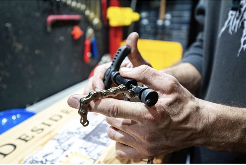 Deux étapes distinctes nécessitent donc cet outil. Le démontage d’abord, où il faut chasser un rivet pour séparer un maillon. La fermeture ensuite, où le rivet du maillon de jonction doit être écrasé proprement pour garantir la solidité.